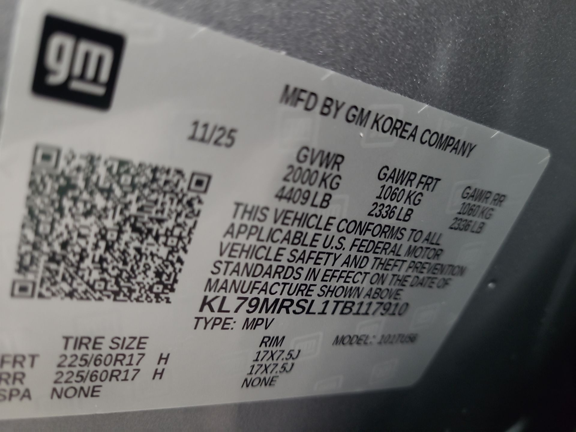 - Tires, 225/60R17 all-season, blackwall (STD)